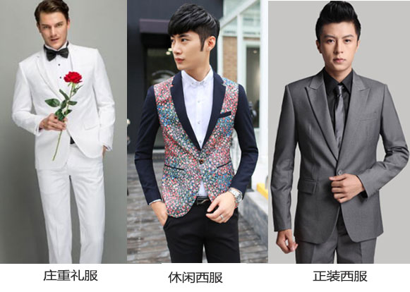 根據穿西服可能出席的場所,大體可分成三類:禮儀場所、商務場所、休閑場所。