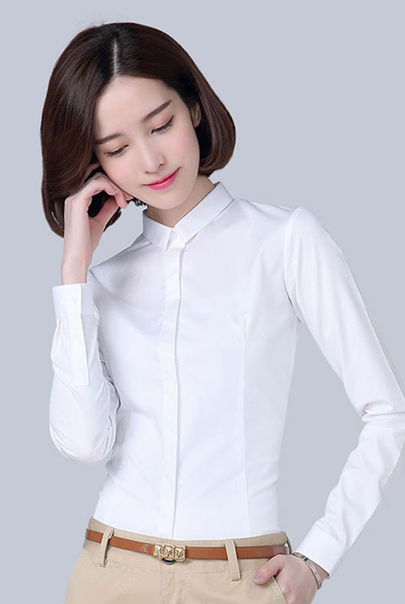您的位置:主頁 > 襯衫定制 > 女士襯衫定制 > 白色簡潔暗門襟襯衫定制